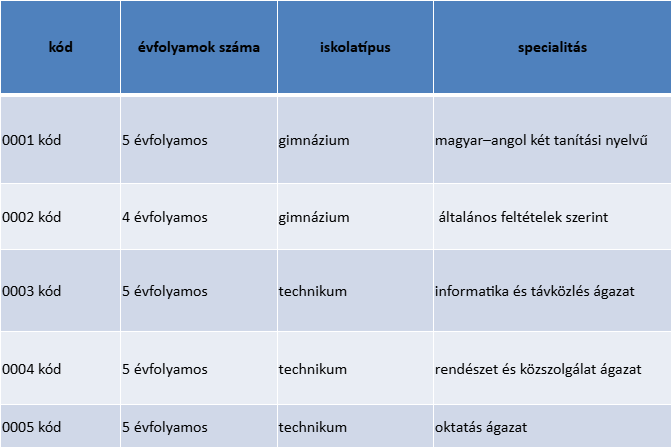 2026/2027. tanévben induló osztályaink