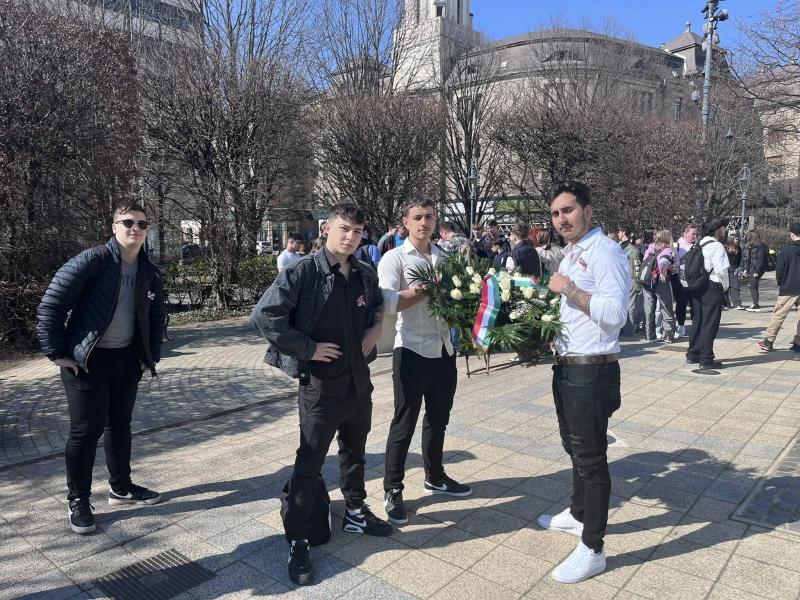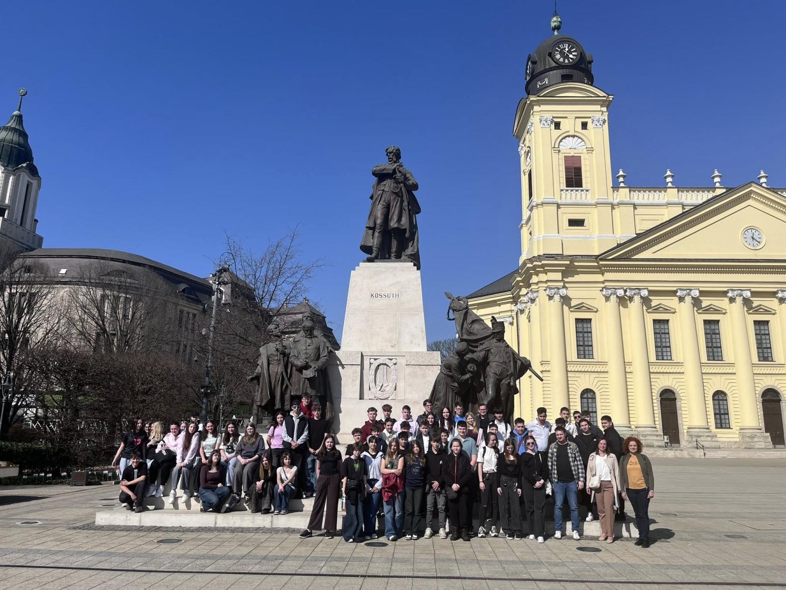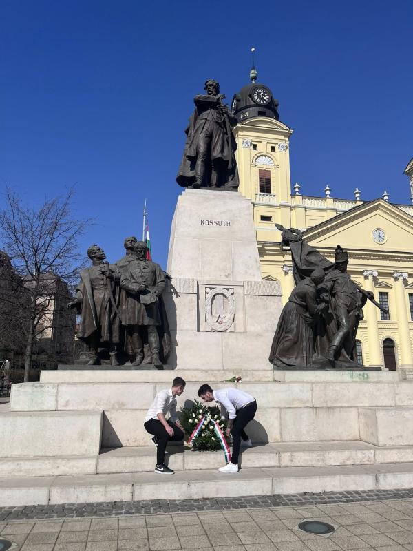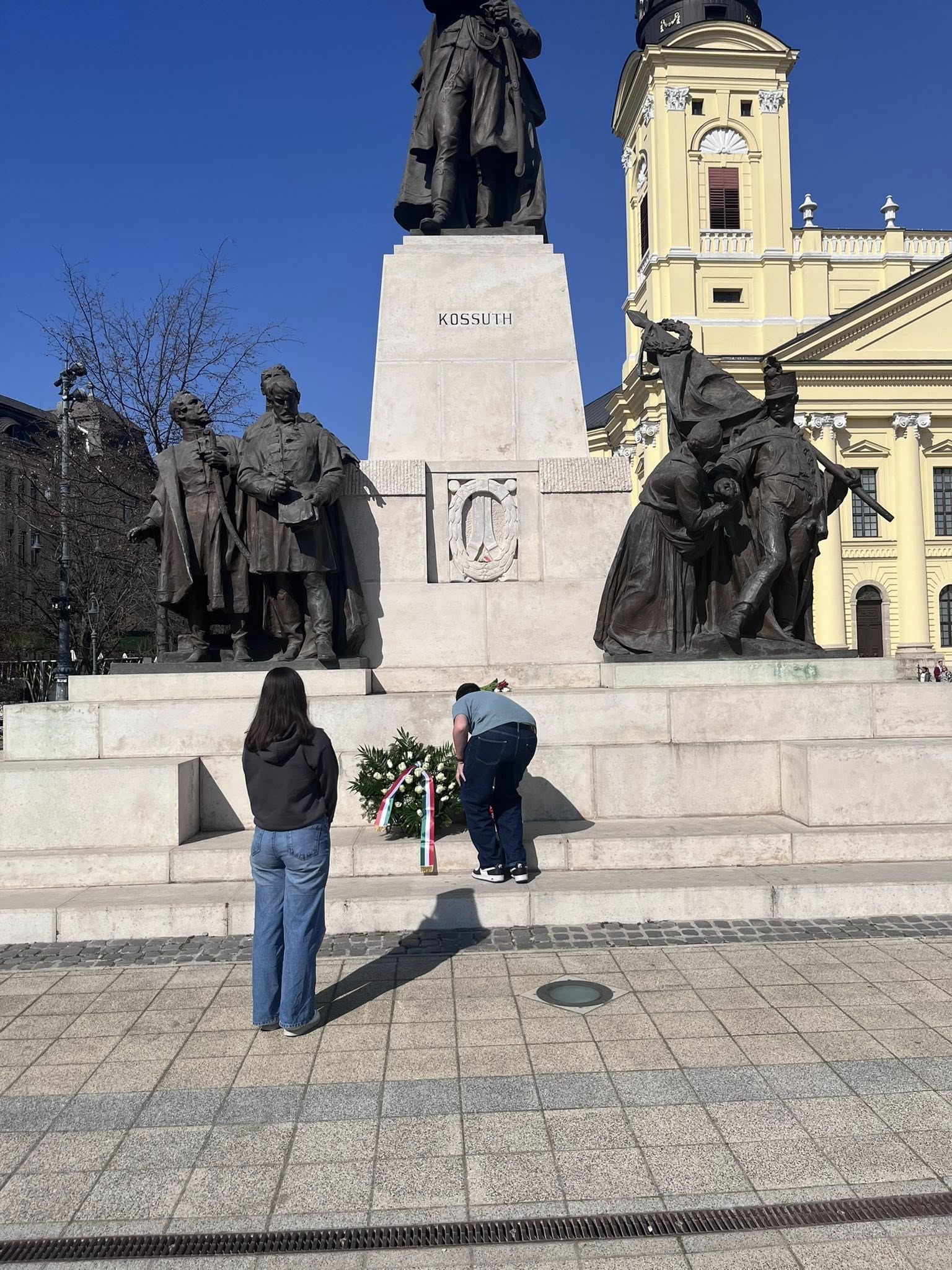Közös megemlékezést tartottunk iskolánkban a március 15-i nemzeti ünnep kapcsán, majd együtt megkoszorúztuk a Kossuth-szobrot Debrecen belvárosában, a Kossuth téren.